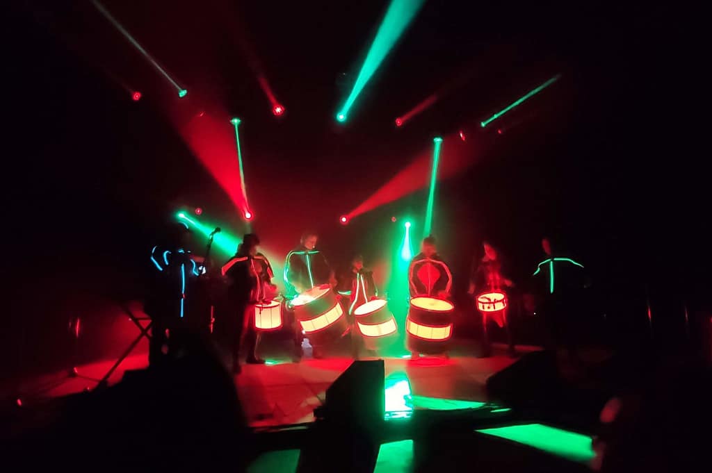 ADN’Groove est un spectacle percussif de 7 musiciens avec costumes et instruments lumineux, se jouant en déambulation ou en fixe, intérieur ou extérieur, de jour comme de nuit.